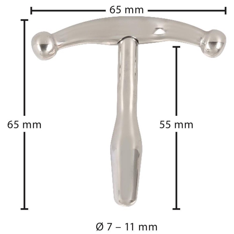 Decorative stimulation/stretching for the urethra! The solid plug Anchor Medium from Penisplug provides intense feelings, exciting massages, pleasurable stretching and sperm/urine control. It is made out of stainless steel and is seamless which makes it comfortable to wear and during play. It comes to a point at the end for easy insertion. It also has 4 beads for stimulation and a wide stopper that decorates the backside in an arousing way. Complete length 6.5 cm, width 6.5 cm. Insertion length 5.5 cm; Ø 0.7 cm – 1.1 cm, weight 52 g. Metal.